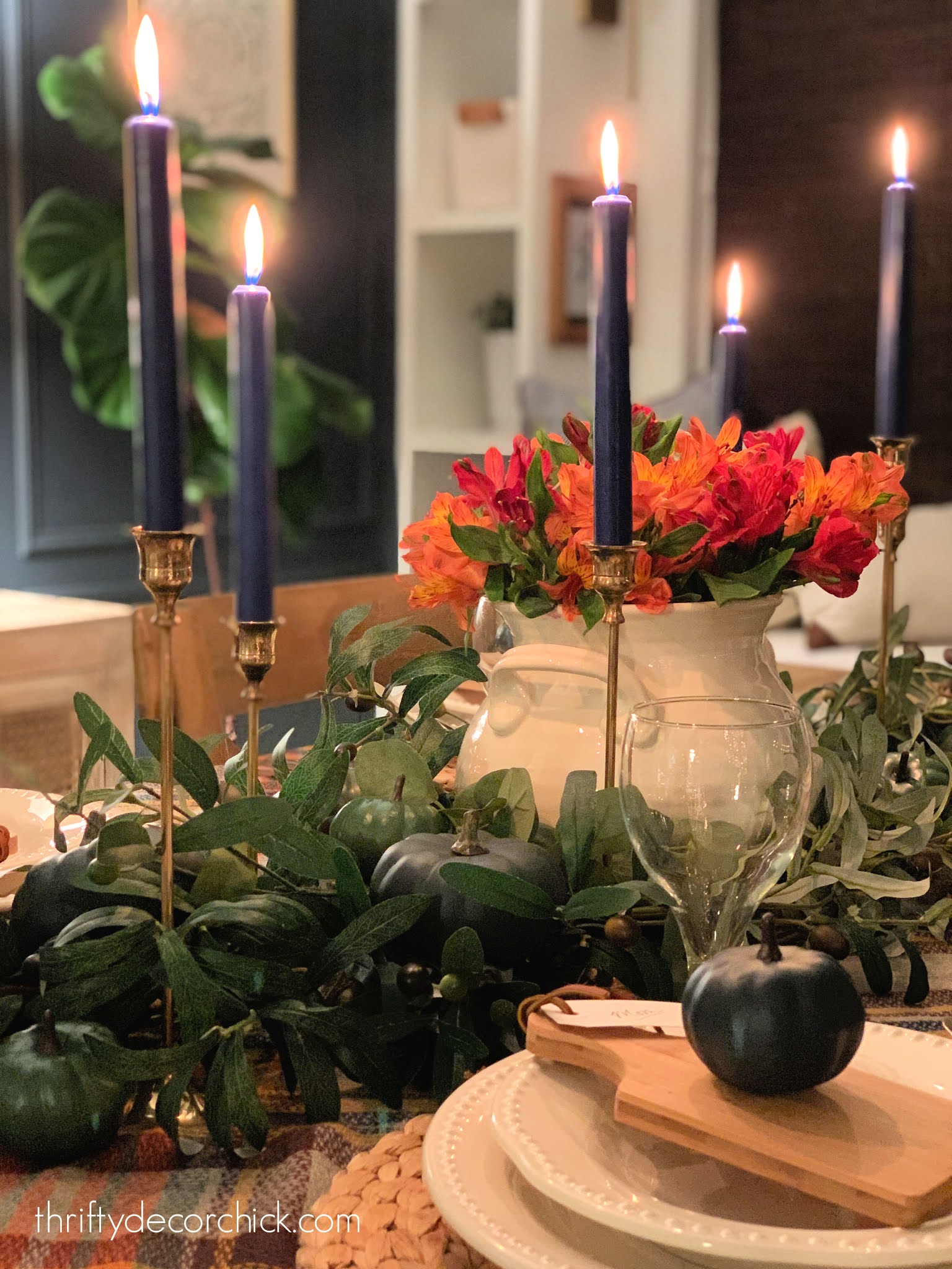 brass candles Thanksgiving tablescape