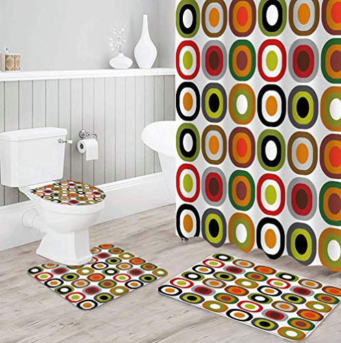 🚽Shower Curtain Set With Bath Mat: our bathroom Accessories set included 12 hooks, 1 shower curtain, 1 bathroom mat, 1 toilet lid cover, 1 U shape rug