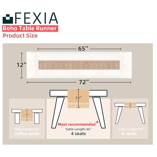 FEXIA Boho Table Runner for Thanksgiving Fall Christmas Home Decor with Tassels 72 Inches Long Pottery barn Furniture Farmhouse Rustic Macrame Burlap Table Decoration for Living Room (12×72 Inches)