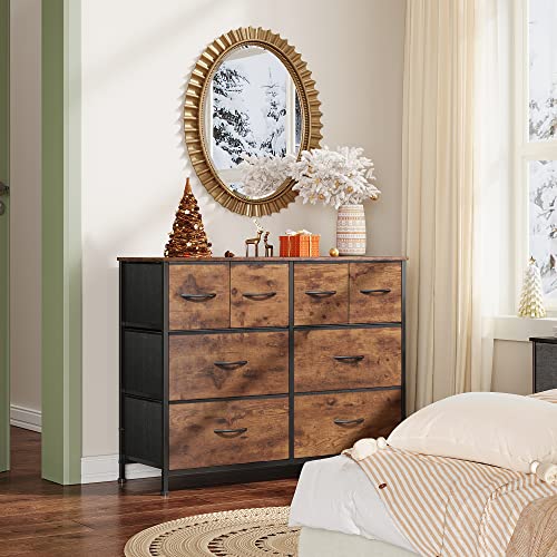 WLIVE Dresser for Bedroom with 8 Drawers, Wide Fabric Dresser for Storage and Organization, Bedroom Dressers, Chest of Drawers for Living Room, Closet, Entryway, Rustic Brown Wood Grain Print